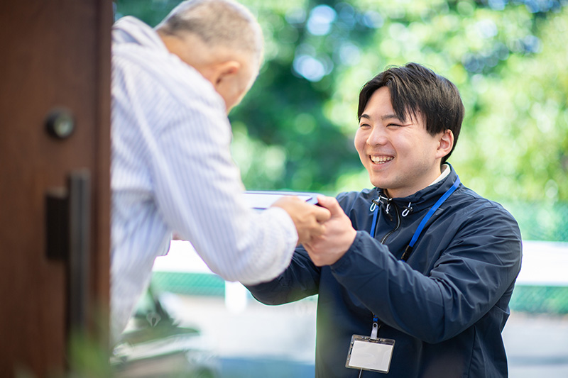 遠方に住むご家族に代わり、ご両親やご本人の生活を見守る支援を行っています。日常の困りごとから緊急時まで、安心して生活を続けるためのサポートです。